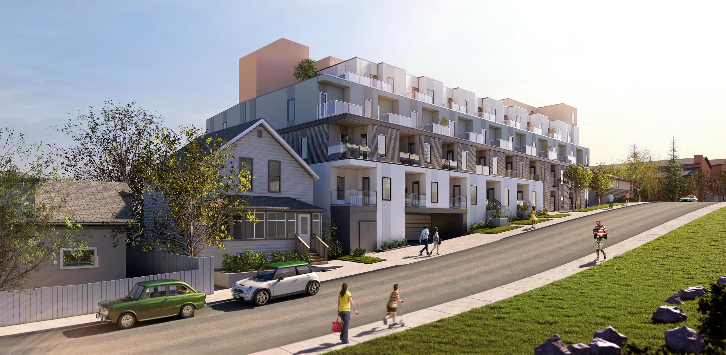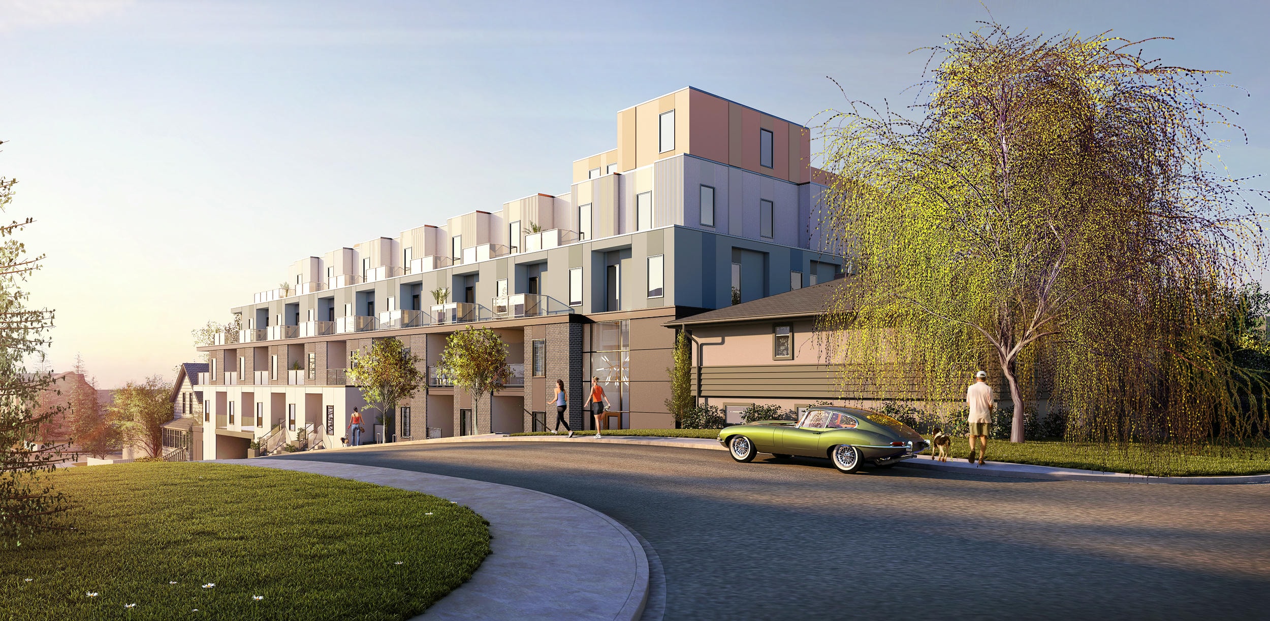 Bankview Versant is a multi-residential project located on 15 Street and 23 Avenue in the neighborhood of Bankview. Situated on a steep slope, the four-storey project provides landscaped terraces as it steps back from the street, providing ample light into the residential units.