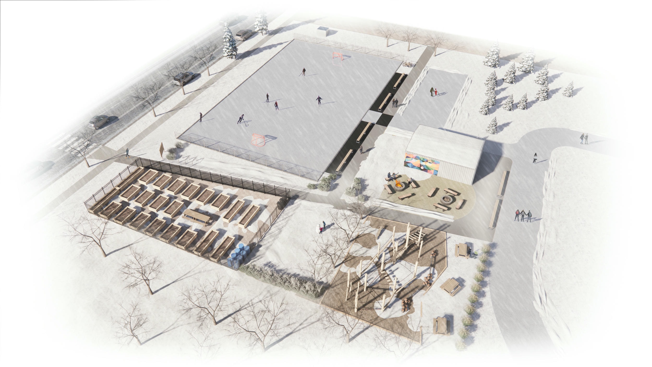 Existing facilities like the baseball diamond and soccer field will be complemented by new additions such as a concrete pad for basketball in the summer and skating in the winter, a zip line, and engaging natural park features. Further future amenities include a double-car wide garage for water and electricity equipment, washrooms and a heated change shed, workout equipment, and community spaces like a fire pit, picnic area, and rentable community gardens. This redevelopment aligns seamlessly with Coach Hill Rec Centre’s vision of creating an outdoor space that fosters socialization, physical activity, and a strong connection to nature that promotes overall well-being and community connections.