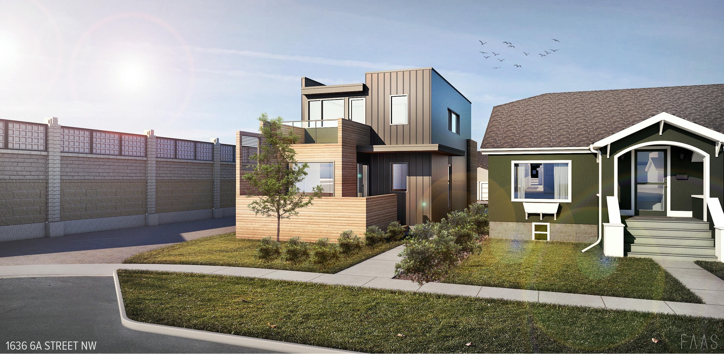 In 2017, FAAS teamed up with Sherger Construction to deliver the City of Calgary Affordable Housing a design-build, multi-unit project in the community of Rosedale. The premise of the project was to create 8 modular structures on remnant parcels, each with a self-contained secondary suite, with a total developed area ranging from 1150 to 1600 sf/unit. All units were designed to achieve LEED for Homes certification and three were designed to be wheelchair accessible. An extensive review of the built form of the community of Rosedale informed the character of the units, resulting in a contextually sensitive design constructed to durable low maintenance materials. In 2019, FAAS received a Mayor’s Urban Design Award for Housing Innovation.