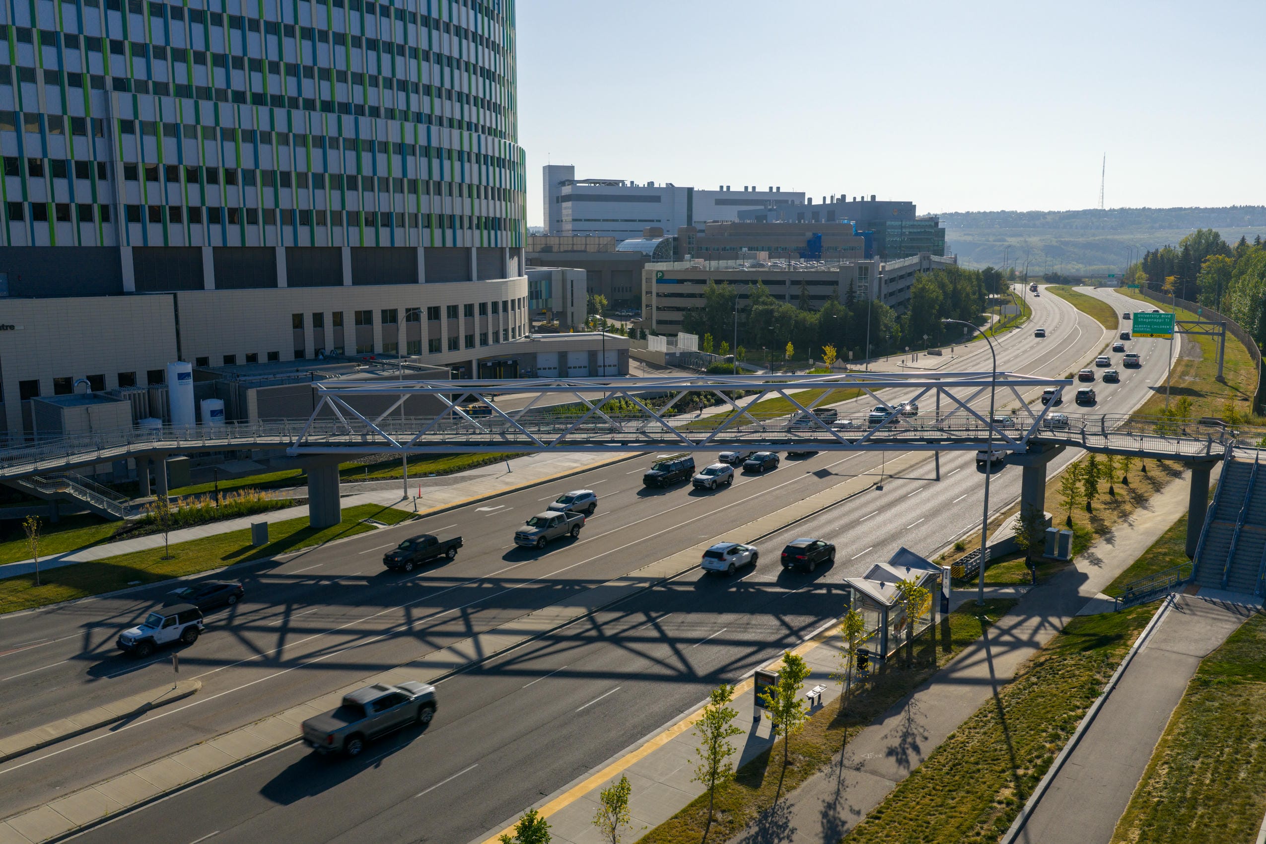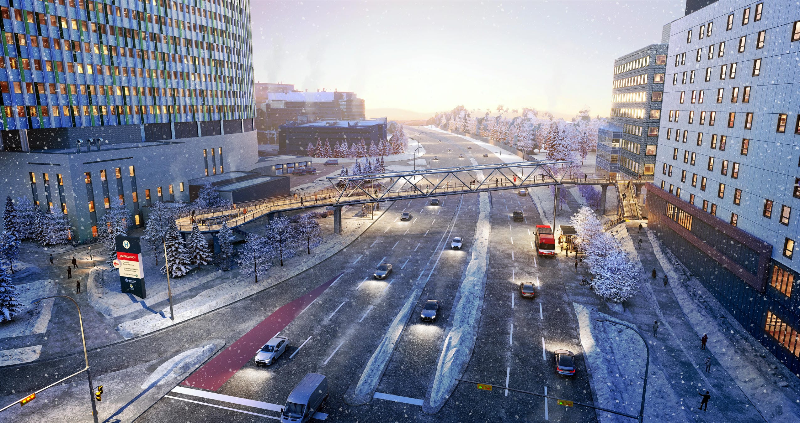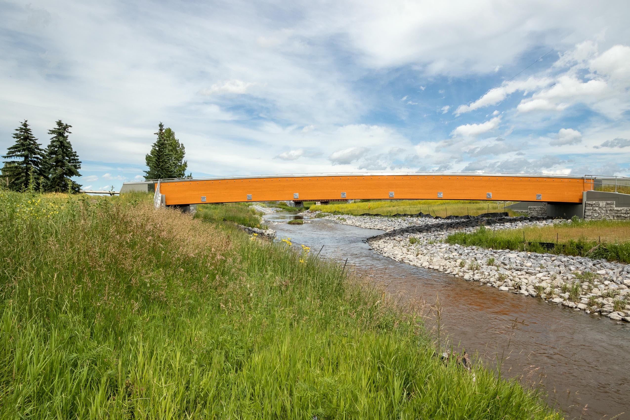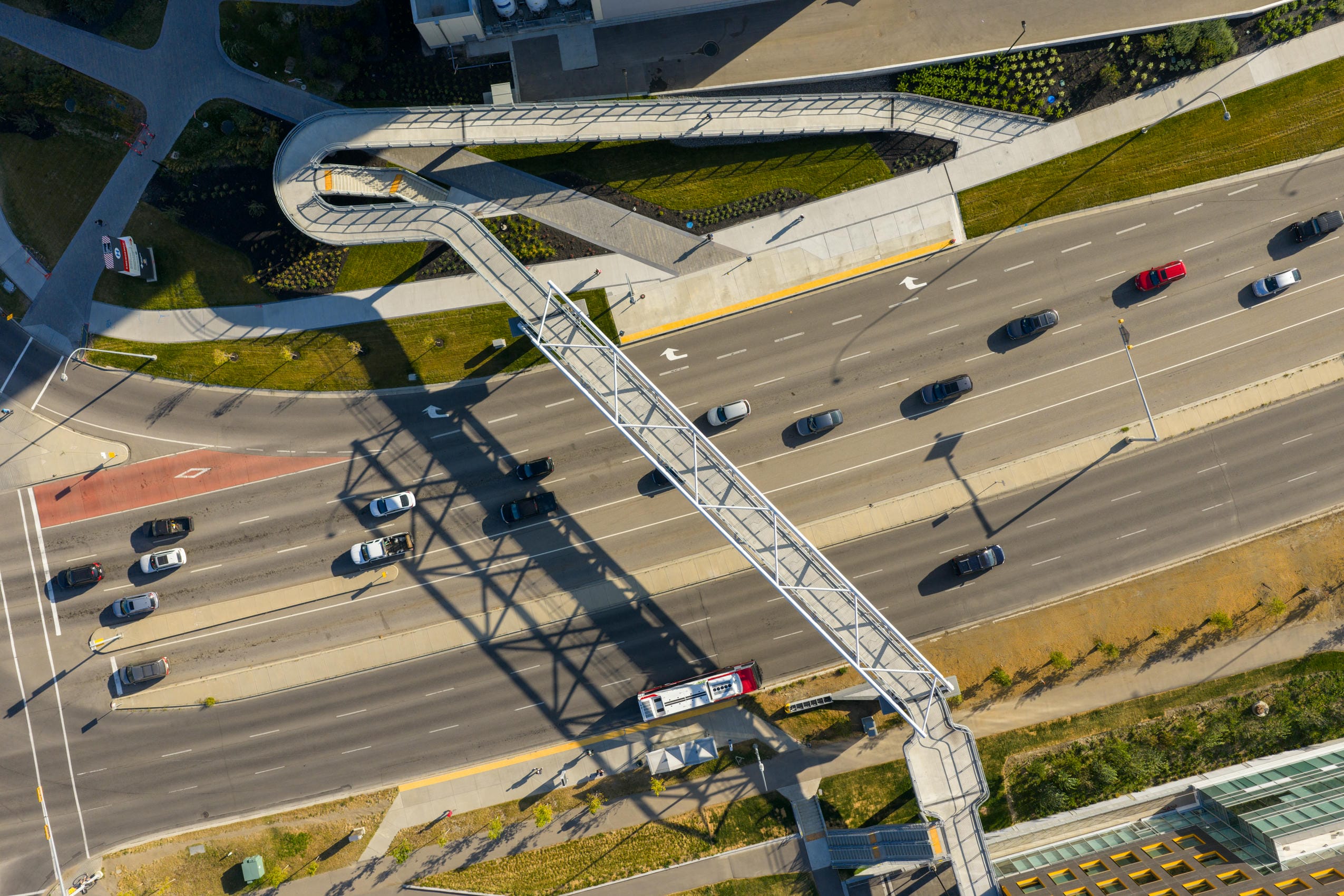 The Stadium Bridge project is a central component of an expansive urban revitalization effort in northwest Calgary and aims to increase the connectivity between the North and South regions that are currently split by 16th Avenue. Currently, 16th Avenue acts as a significant barrier amid high-density population and employment zones. Surrounded by major developments on both sides, the project aims to seamlessly integrate a visually captivating and functionally effective pedestrian bridge, fostering a pedestrian-friendly environment with a strong emphasis on transit and active transportation. The goals and the key benefits for the bridge aim to increase connections to regional pathways, increase pedestrian and cycling movement, increase access to the north crosstown BRT and to facilitate access to both the Foothills Medical Centre and UXBorough (stadium) development. This innovative bridge design aligns seamlessly with its urban context while supporting pedestrian access, creating connections in the community. The use of box trusses, rounded columns, and chamfered ramp edges not only responds to the human scale but also contributes to a visually refined infrastructure. The project’s commitment to legibility, vibrancy, and resilience further solidifies its role as a transformative element, enhancing connectivity, accessibility, and the overall urban experience in northwest Calgary.